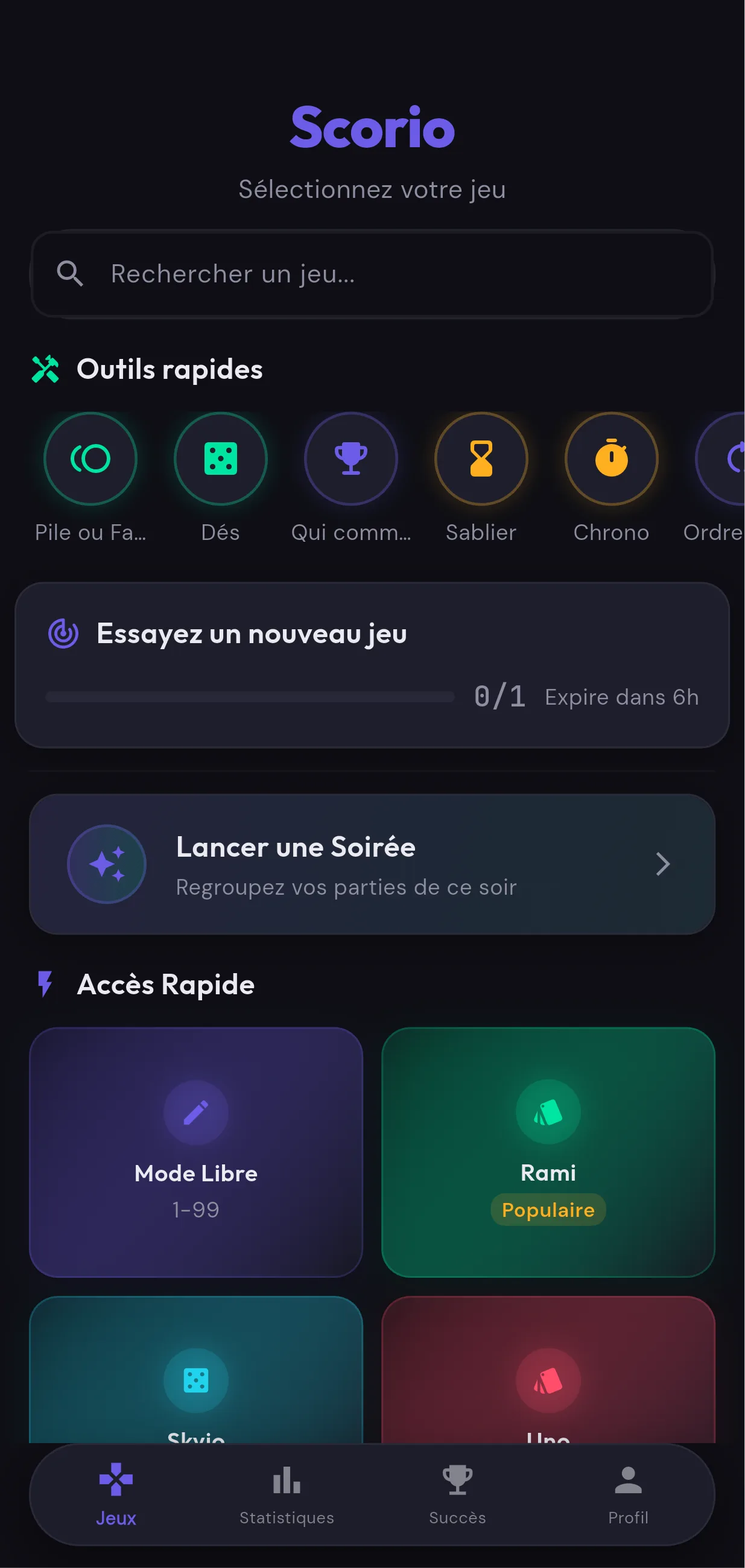 Téléchargez Scorio gratuitement et transformez vos soirées jeux.
